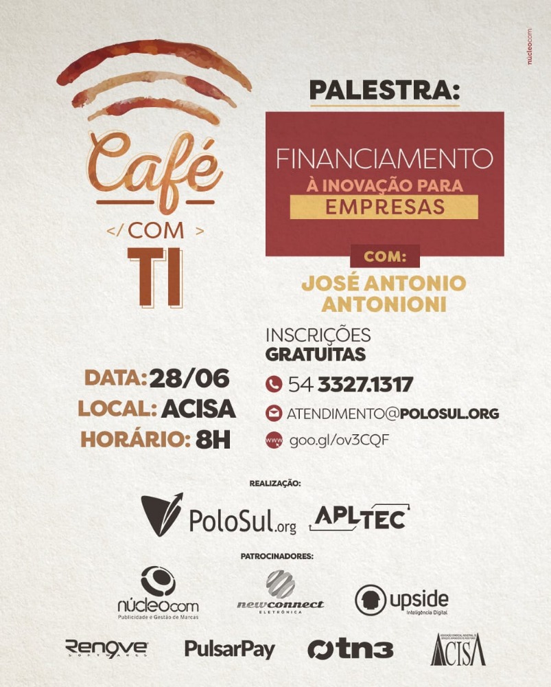 A Softsul, parceira do PoloSul convida para o CaféTech: Tema: Incubação de Ideias e Prestação de…